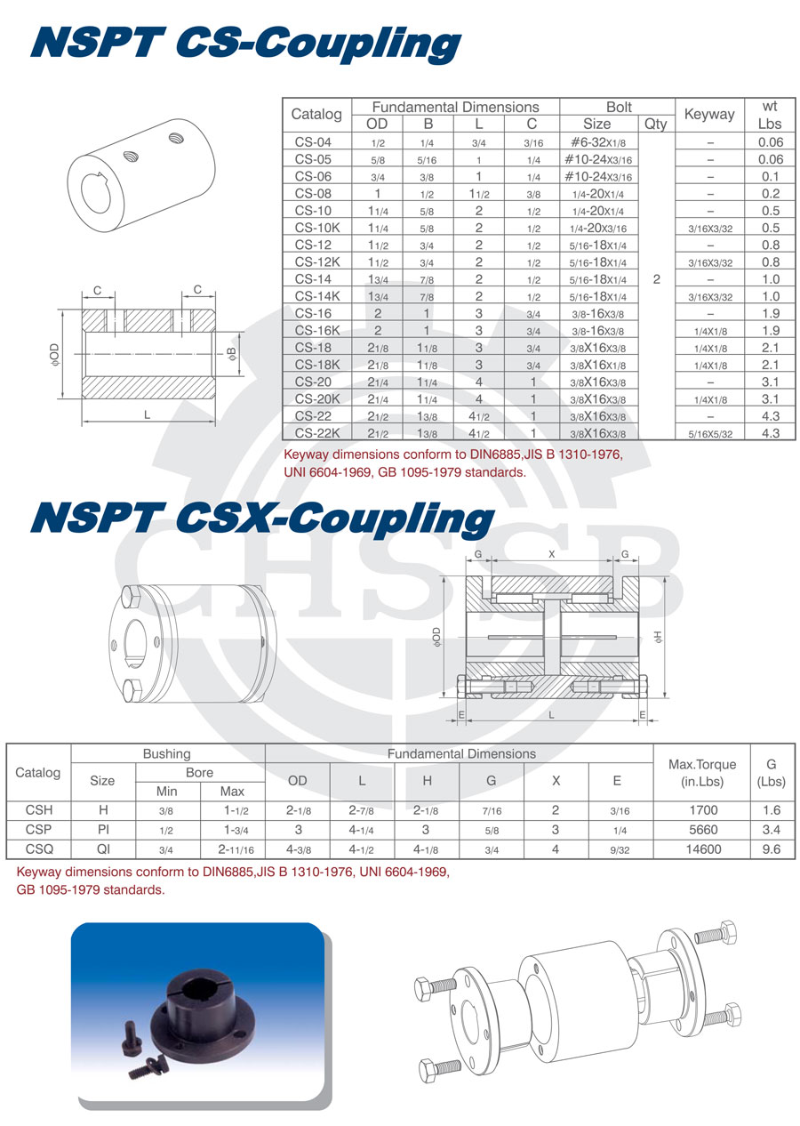 Range of product: ANSI/DIN:(CSH/CSP/CSQ) Inch size product (Apply to ANSI market) Metric size product (Apply to DIN market)