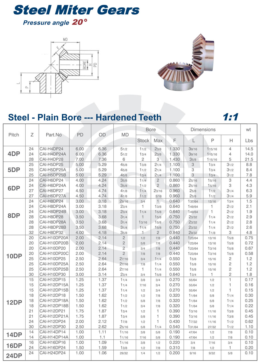產品范圍: 美標:(20° 1:1) 歐標:(20° 1:1/1:2/1:3/1:4) 英制尺寸產品(適用于美標市場) 公制尺寸產品(適用于歐標市場) SB-A型錐齒輪 齒輪、圓柱正齒輪、尼龍齒輪、傳動齒輪、變位齒輪、漸開線齒輪、斜齒輪、螺旋齒輪、內齒輪、齒圈、傘齒輪、錐齒輪、